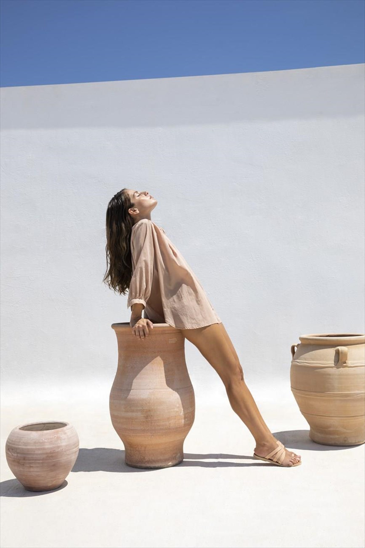 Για τη συλλογή ΜΑΙΝ SS24, οι Ancient Greek Sandals πειραματίζονται όπως κάθε σεζόν με διάφορες υφές και υλικά, όπως η ψάθα, το κροκό δέρμα, τα μεταλλικά χρώματα, το σουέτ δέρμα αλλά και τα εμαγιέ διακοσμητικά στοιχεία.  Όλα τα σανδάλια της συλλογής SS24 έχουν σχεδιαστεί με γνώμονα τo ανεπιτήδευτο στυλ της παραλίας, αλλά και κάθε εμφάνισή του καλοκαιριού, από το πρωί ως το βράδυ.