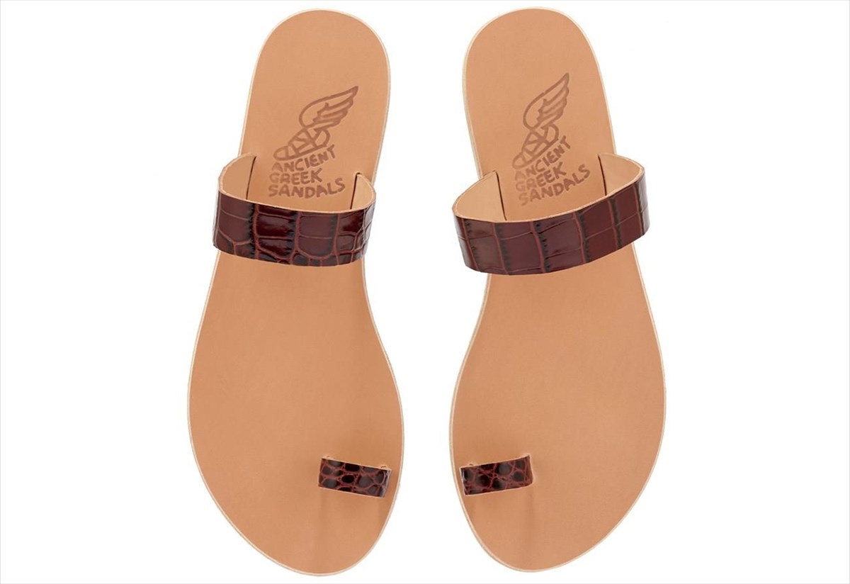 Απογειώνοντας την τάση του γυαλιστερού κροκό δέρματος, οι Ancient Greek Sandals αναβιώνουν κάποια κλασικά σχέδια σε μαύρο χρώμα αλλά και στην απόχρωση της σκουριάς. Ιδανικά για να συνδυαστούν με minimal outfits, τόσο στην πόλη όσο και στις διακοπές.