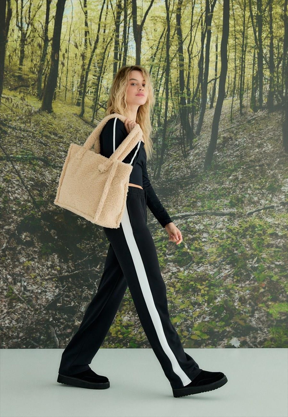 Η νέα συλλογή της εταιρείας περιλαμβάνει βασικά κομμάτια, όπως joggers και κολάν με πλαϊνές ρίγες και ανοίγματα στο τελείωμα, σύνολα σε γήινες αποχρώσεις, φούτερ με σπορ λεπτομέρειες και μπουφάν σε ουδέτερους τόνους, όπως μπεζ και χακί. Τα fleece μπουφάν και τα αξεσουάρ, όπως τσάντες με γούνινες λεπτομέρειες, καπέλα και oversized κασκόλ, προσθέτουν μια μοντέρνα πινελιά που μετατρέπει κάθε εμφάνιση σε ένα ξεχωριστό στυλ.