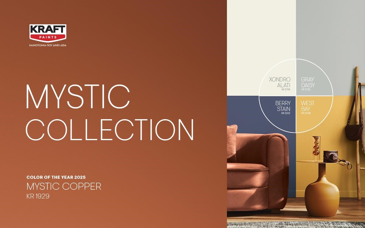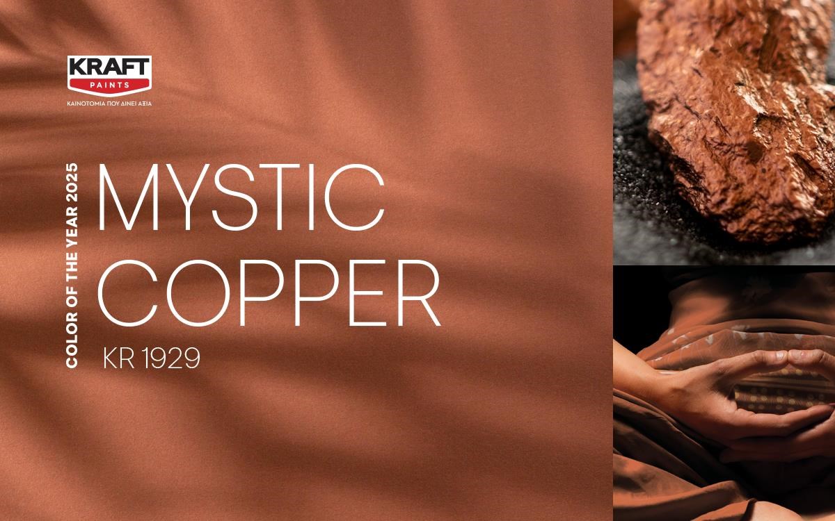 Η KRAFT Paints παρουσιάζει το Χρώμα της Χρονιάς 2025, KR1929 Mystic Copper από την Inspired Collection, ένα βαθύ, ζεστό πορτοκαλί με έντονα μεταλλικά στοιχεία, που υπόσχεται να φέρει βάθος και κομψότητα σε κάθε χώρο. Αυτό το ευέλικτο χρώμα, εμπνευσμένο από τις φυσικές αποχρώσεις του φθινοπώρου και τη διαχρονική γοητεία του χαλκού, αποτελεί την τέλεια βάση για τις σύγχρονες διακοσμητικές τάσεις και μπορεί να μεταμορφώσει κάθε δωμάτιο.