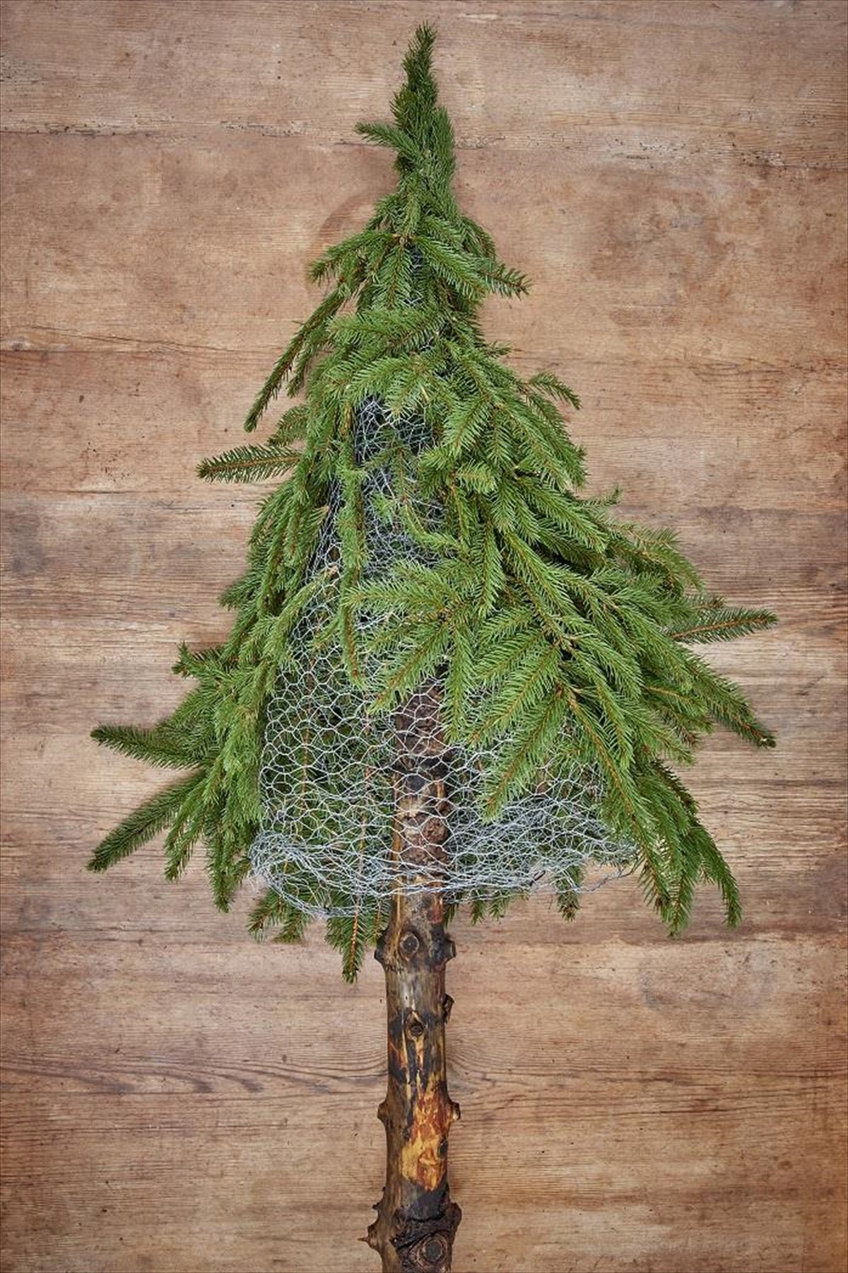 Ένα ρουστίκ, DIY χριστουγεννιάτικο δέντρο είναι ιδανικό για όσους επιθυμούν να υιοθετήσουν έναν βιώσιμο τρόπο ζωής. Πρόκειται για ένα δέντρο από ανακυκλωμένα υλικά, όπου έχουν αξιοποιηθεί ένας παλιός κορμός (π.χ. από το περσινό χριστουγεννιάτικο δέντρο), σύρμα και κλαδιά πεύκου. Για να το φτιάξετε, ξεκινήστε σχηματίζοντας ένα κωνικό πλαίσιο από σύρμα, το οποίο θα στερεώσετε στον κορμό μ’ ένα πιο χοντρό σύρμα. Στη συνέχεια, δέστε με περισσότερο σύρμα τα κλαδιά πεύκου γύρω από το πλαίσιο. Φτιάξτε μικρά kokedama από αλεξανδρινά και κρεμάστε τα στο δέντρο με σπάγκο. Ολοκληρώστε τη διακόσμηση τοποθετώντας ένα κομμένο αλεξανδρινό στην κορυφή του δέντρου, μέσα σε έναν δοκιμαστικό σωλήνα γεμάτο νερό.