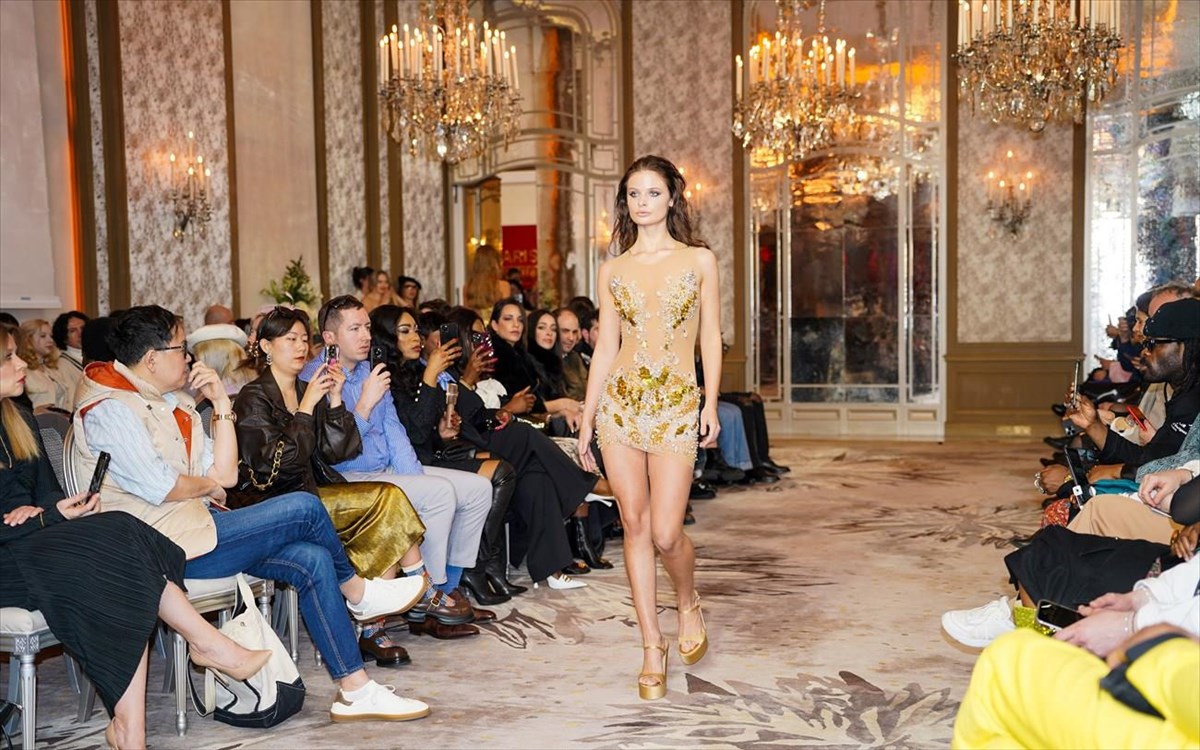Λαμπερές και εντυπωσιακές δημιουργίες που άφησαν το δικό τους αποτύπωμα στο Paris Fashion Week με την υπογραφή της Irene Angelopoulos, στο Plaza Athénée, με την υποστήριξη του νερού AVATON.