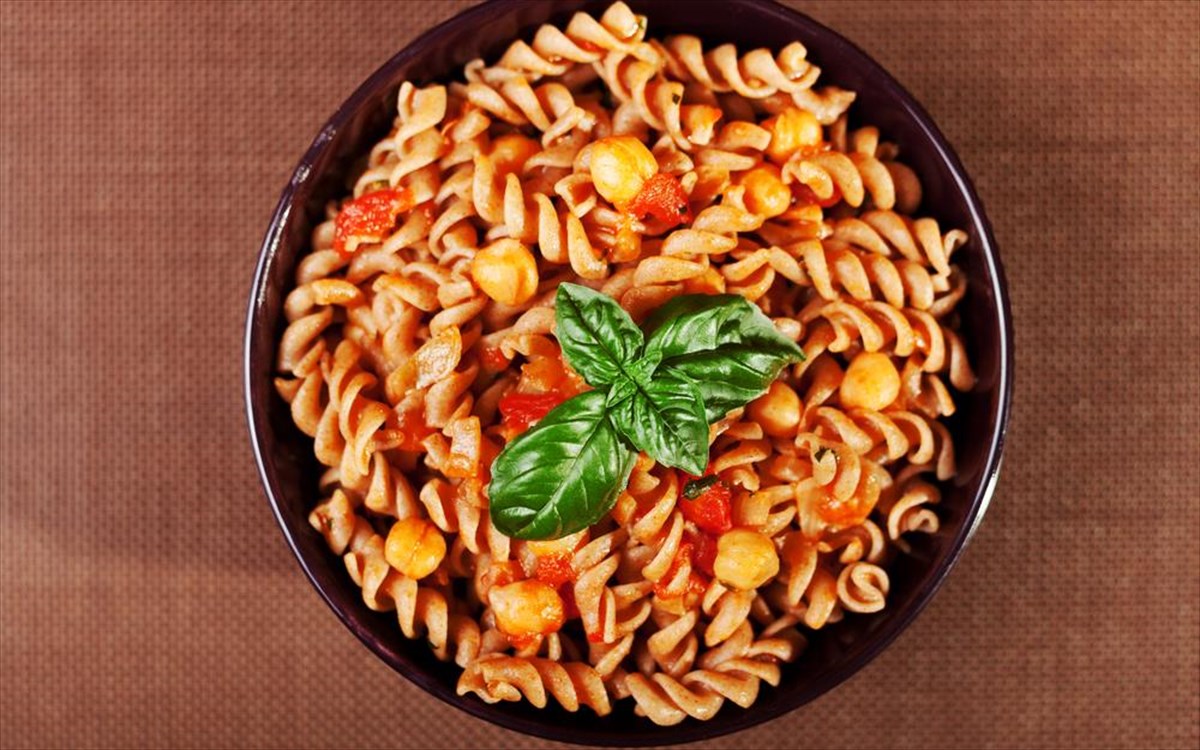 Συνδυάστε ρεβίθια με ζυμαρικά και απολαύστε ένα χορταστικό και αρωματικό πιάτο. Θα χρειαστείτε: 500 γρ. ρεβίθια, 500 γρ. κοφτό μακαρονάκι ή άλλο ζυμαρικό, 6 κουτ. της σούπας ελαιόλαδο, 5 σκελίδες σκόρδο, 3 κουτιά ντομάτας κονκασέ, 5 κουταλιές της σούπας ξερό δεντρολίβανο, αλάτι, πιπέρι, μισό φλιτζάνι τόφου κομμένο σε μικρά κομμάτια. Εκτέλεση: Βάλτε αποβραδίς τα ρεβίθια σε λίγο νερό και μισοβράστε τα όταν έρθει η ώρα να ετοιμάσετε το γεύμα σας. Σε μια άλλη κατσαρόλα, τσιγαρίστε σκόρδο και δενδρολίβανο μαζί και στη συνέχεια, αφαιρώντας το σκόρδο και το δεντρολίβανο με μια τρυπητή κουτάλα, προσθέτετε τη ντομάτα, αλάτι, πιπέρι και λίγο νερό και αφήνετε να βράσει σε σιγανή φωτιά για 40 λεπτά. Ρίξτε τα μισοβρασμένα ρεβίθια στη σάλτσα μαζί με λίγο ζουμί και βράστε τα όλα μαζί για 20 λεπτά. Στη συνέχεια, και αφού έχουν βράσει τα ρεβίθια, ρίξτε μέσα και τα ζυμαρικά, χαμηλώστε τη φωτιά και αφήστε να μαγειρευτούν μέχρι να απορροφήσουν τα υγρά τους. Σερβίρετέ τα ζεστά και προσθέστε κομματάκια τόφου για έξτρα γεύση.