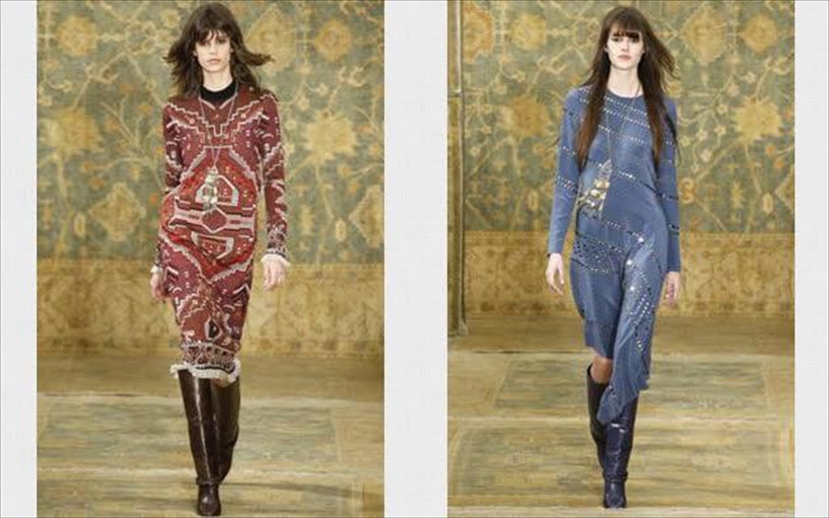 Εδώ βλέπουμε συνδυασμούς από τα '70s με μαροκινό στυλ, ασύμετρα, που συνθέτουν το λεγόμενο boho style. Το blue raf σε συνδυασμό με χρυσές λεπτομέρειες και το πορφυρό κόκκινο με καφέ συνδυασμούς μάς δίνει ένα εκλπλητικό αποτέλεσμα. Χρώματα ζεστά για το χειμώνα, ευκολοφόρετα, άνετα και κομψά.