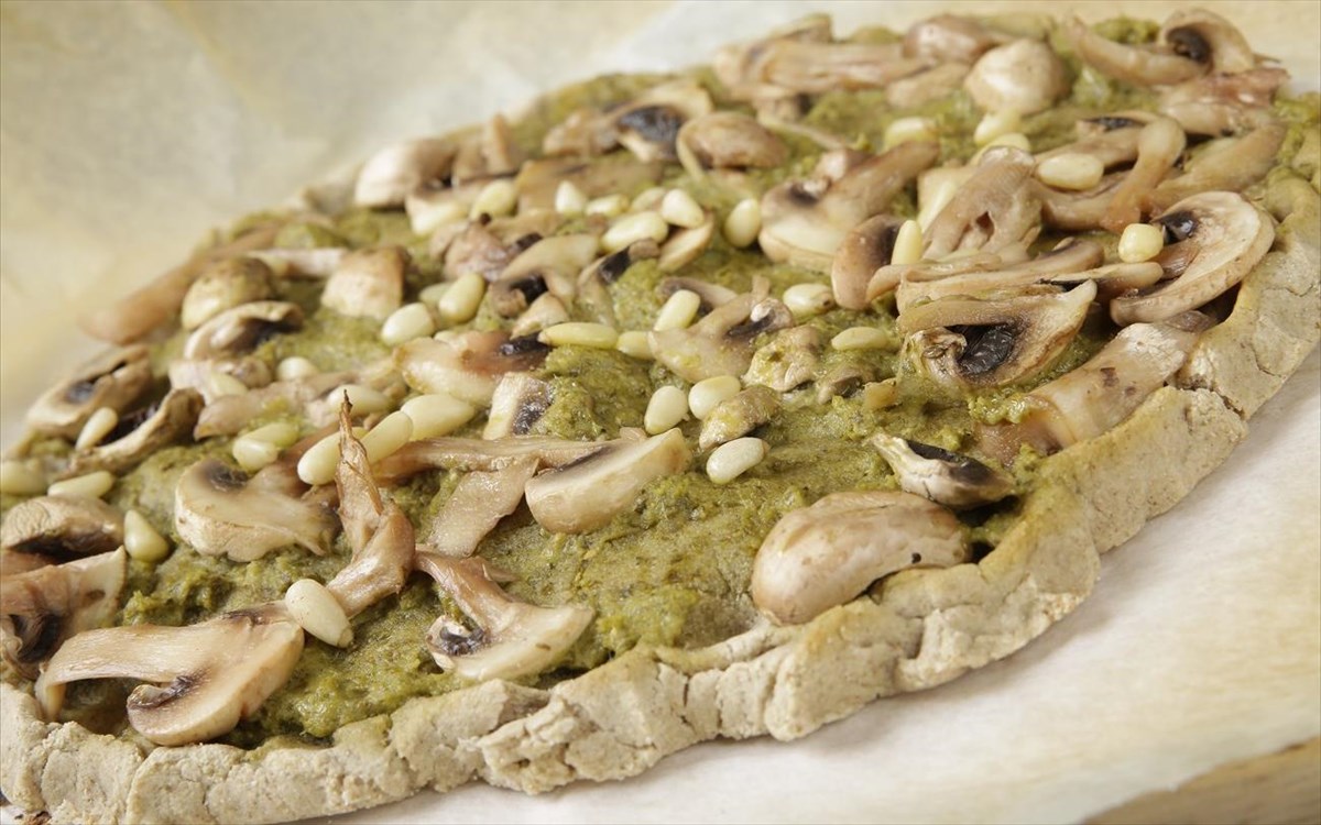 Θάνος Λέναςχορτοφαγική πίτσα με σπιτική σάλτσα πέστο