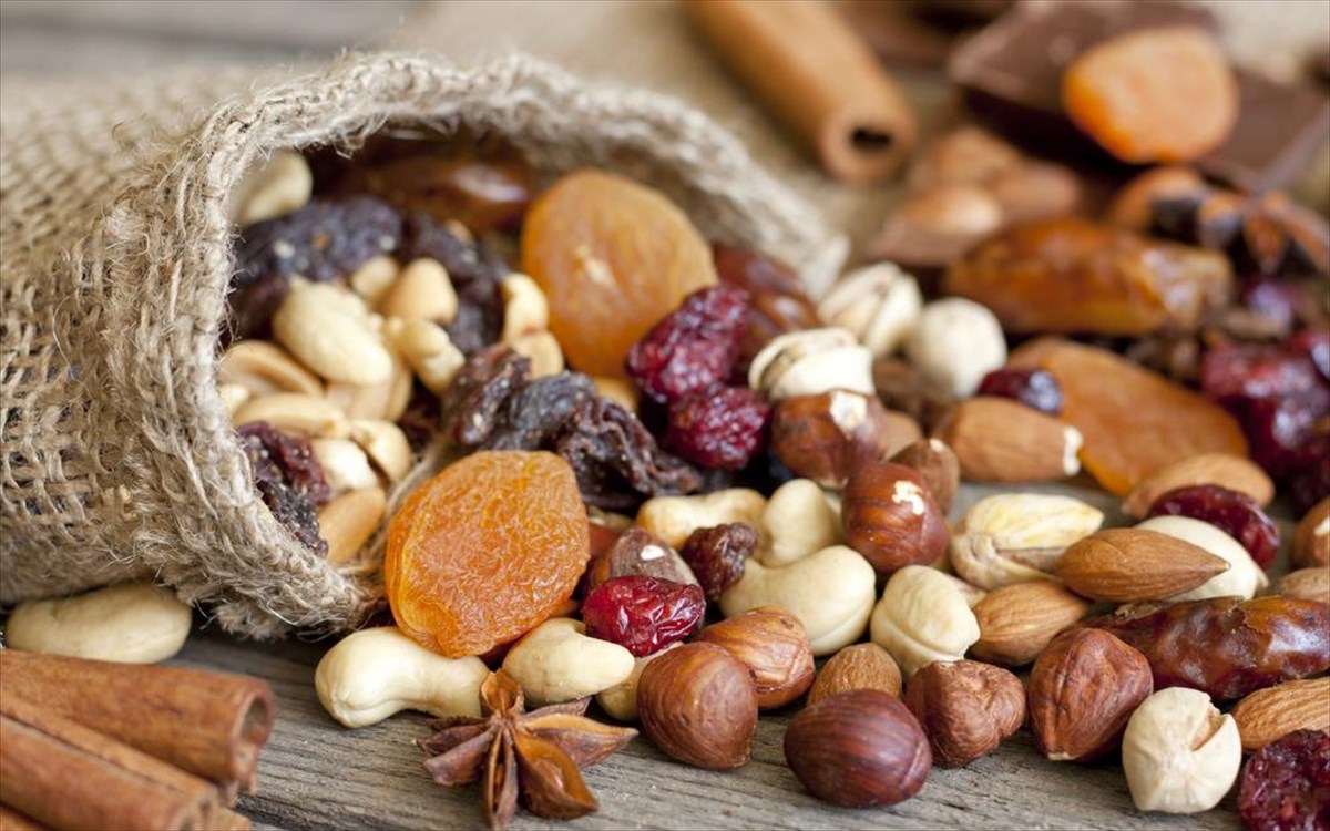 Ίσως η πιο απλή, αλλά άκρως ωφέλιμη επιλογή, τα αποξηραμένα φρούτα είναι πλούσια σε αντιοξειδωτικές βιταμίνες, όπως η E και η C, σε μέταλλα και ιχνοστοιχεία, όπως ο σίδηρος, ο χαλκός, το σελήνιο και το κάλιο, αλλά και σημαντικά φλαβονοειδή και καροτενοειδή. Οι ξηροί καρποί -και ιδιαιτέρως τα καρύδια- είναι πλούσιοι σε καλά λιπαρά, ενώ τα αμύγδαλα περιέχουν ασβέστιο, τα βραζιλιάνικα φιστίκια σελήνιο και τα φιστίκια Αιγίνης είναι αντιοξειδωτικά. Αυτό που πρέπει να προσέξετε είναι να μην επιλέξετε αποξηραμένα φρούτα με επιπλέον προσθήκη ζάχαρης και να μην το παρακάνετε με την κατανάλωση ούτε των φρούτων, ούτε των ξηρών καρπών, καθώς οι θερμίδες… καιροφυλακτούν. Προτιμήστε αποξηραμένες σταφίδες, σύκο, δαμάσκηνο και χουρμά και συνδυάστε τα με καρύδια, αμύγδαλα, φιστίκια Αιγίνης και βραζιλιάνικα, προσέχοντας να μην ξεπερνάτε τη χούφτα.