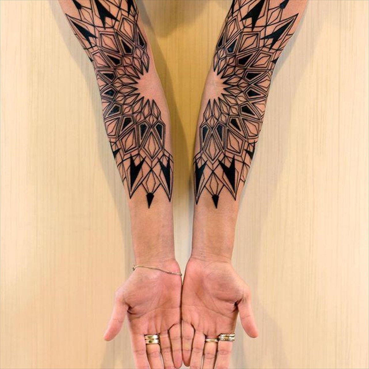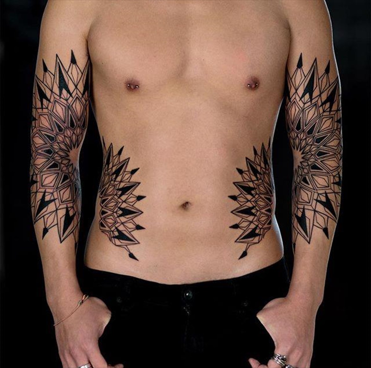 Πίσω από τα ευφάνταστα αυτά τατουάζ βρίσκεται ο Roxx, ο ειδικός στα μίνιμαλ γεωμετρικά σχέδια που έχουν γίνει πλέον τάση. Για τον σχεδιασμό τους γίνεται χρήση μόνο μαύρης μελάνης και οι φωτοπροτάσεις που ακολουθούν έρχονται κατευθείαν από το Σαν Φραντζίσκο.