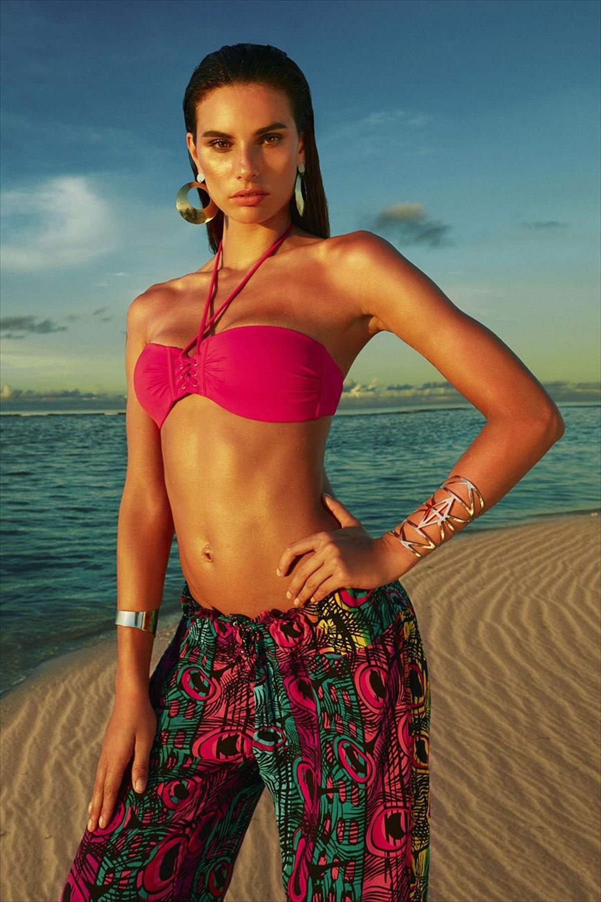 Χρωματικές εκρήξεις, ιδιαίτερα μοτίβα, εκκεντρικά τυπώματα για τα Brazilian κάτω μέρη αλλά και τρίγωνα και bandeau μπικίνι και φυσικά πανέμορφα trikinis. Maxi φορέματα, παντελόνια, ponchos, ολόσωμες φόρμες και εκπληκτικά καφτάνια ολοκληρώνουν το look μας στην παραλία. Τη συγκεκριμένη συλλογή ολοκληρώνουν τα ανάλαφρα sarongs- παρεό και τα φουλάρια με ισχυρό στυλ. Άλλωστε το πώς θα το φορέσουμε ένα μαγιό ή ένα τουρμπάνι είναι στο χέρι και την φαντασία μας!