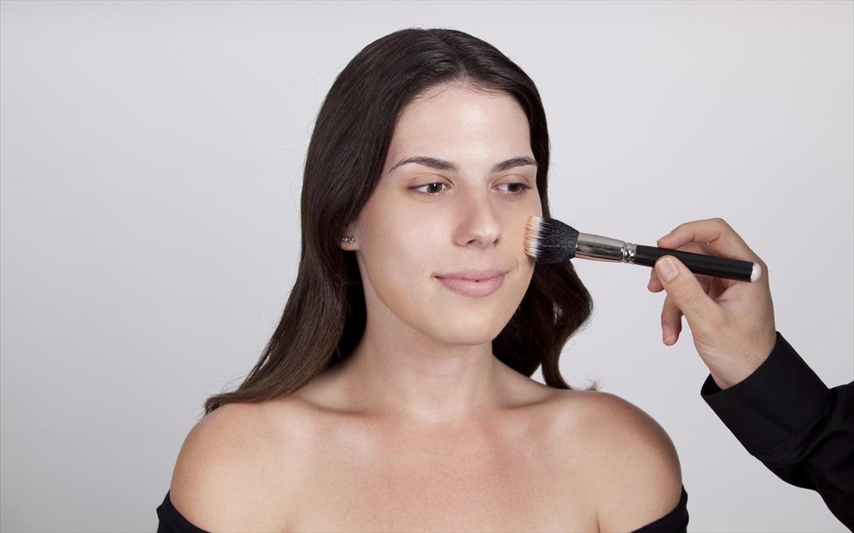 1. Liguid foundation: εφαρμόζουμε την απόχρωση με το ειδικό blender beuah.
