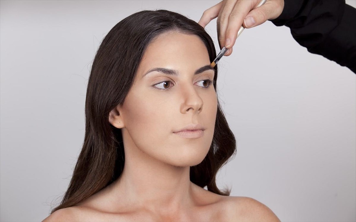 5. Εye brow: σχηματίζουμε με σκιά στο χρώμα των μαλλιών μας και γεμίζουμε τα κενά του.