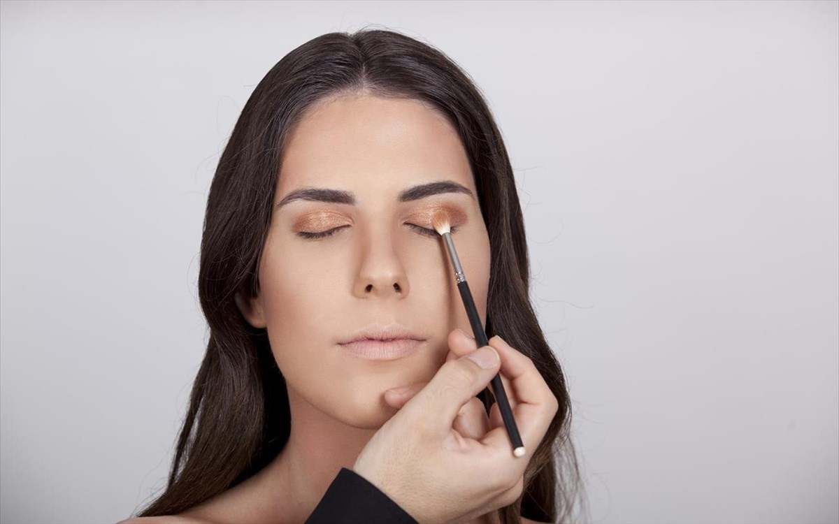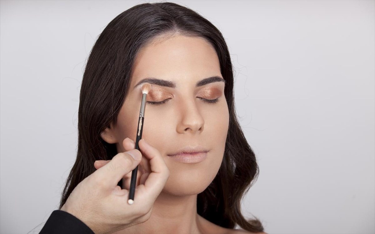 6. Eye shadow: με πινέλο blending τοποθετούμε σε όλο το κινητό βλέφαρο το επιθυμητό μας χρώμα, σβήνοντάς το προς τα έξω.