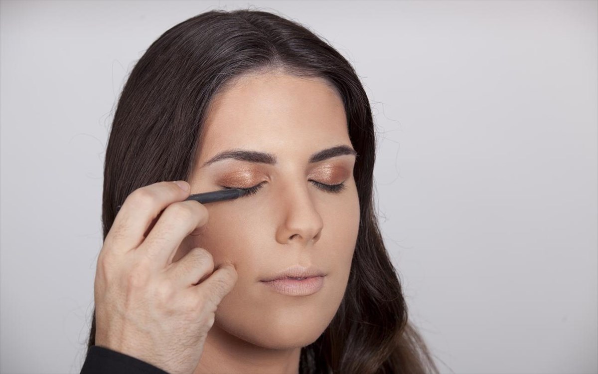 8. Βlack eye pencil: περνάμε τη γραμμή του κοντά στις βλεφαρίδες για πυκνότητα.