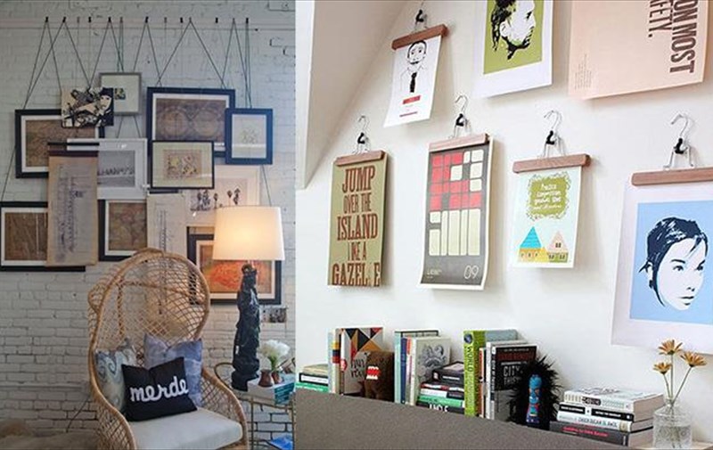 Οι τοίχοι δεν έχουν αρχή και τέλος. Σκεφτείτε πορτρέτα, τοπία, αναμνήσεις, ασπρόμαυρες εικόνες, χρωματιστές, κολάζ, με ή χωρίς κάδρο, αυτή τη φορά όχι μόνο στον τοίχο, αλλά και κοντά στη βιβλιοθήκη, πάνω στα ράφια, ένθετα…