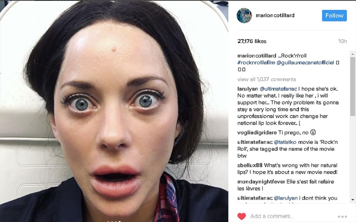 Στην αρχή έλεγαν όλοι ότι κάτι τρέχει με τον Brad Pitt. Η Marion Cotillard το διέψευσε και καλά έκανε. Και τώρα εμφανίστηκε με φουσκωμένα χείλη, σαν την Angelina Jolie και την Kylie Jenner. Μα πότε επιτέλους θα ξεφουσκώσει η μανία με τα υπερμεγέθη χείλη; της Σάντυς Τσαντάκη