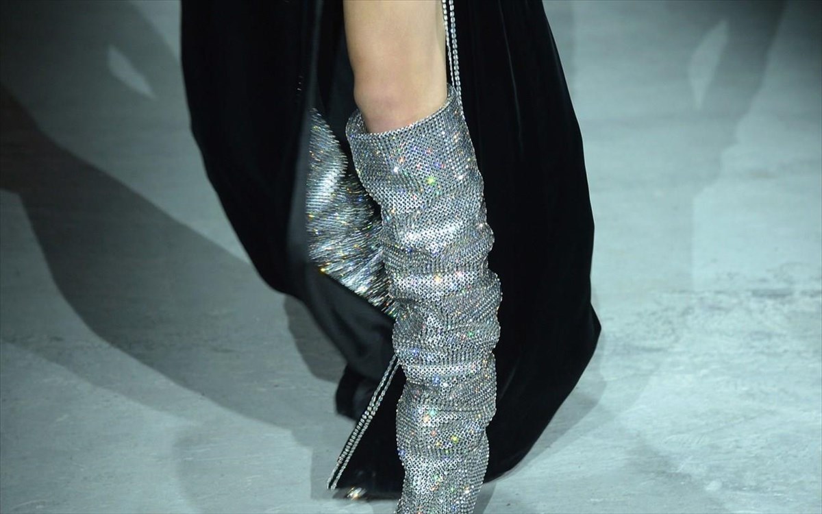 Σκεφτείτε ότι είναι ένα αξεσουάρ που πρόκειται να λανσαριστεί επίσημα τον χειμώνα του 2018. Είναι χειροποίητες μπότες με 3000 πέτρες, μετρημένες μία μία.... Ας μην κάνουμε καλύτερα τον υπολογισμό. Γιατί θα ζαλιστούμε....