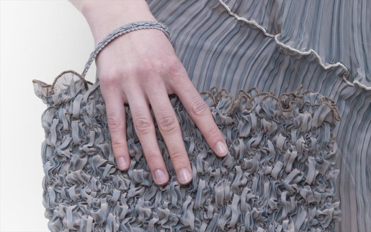 Photography: Akiss Paraskevopoulos from D-tales Creative AgencyΗ Δάφνη Βαλέντε, σαν σύγχρονη γλύπτρια-σχεδιάστρια μόδας, «σμιλεύει» τα φύλλα της Ακάνθου για να τα φορέσουμε απλικαρισμένα σε ρούχα που θυμίζουν γλυπτά σε κίνηση. Ειδικά το λευκό θυμίζει αρχαιοελληνικό φόρεμα, θα μπορούσε να φορεθεί σα νυφικό, φόρεμα παρανύμφου ή ακόμη και αποφοίτησης, όπως προτείνει και η ίδια η δημιουργός.