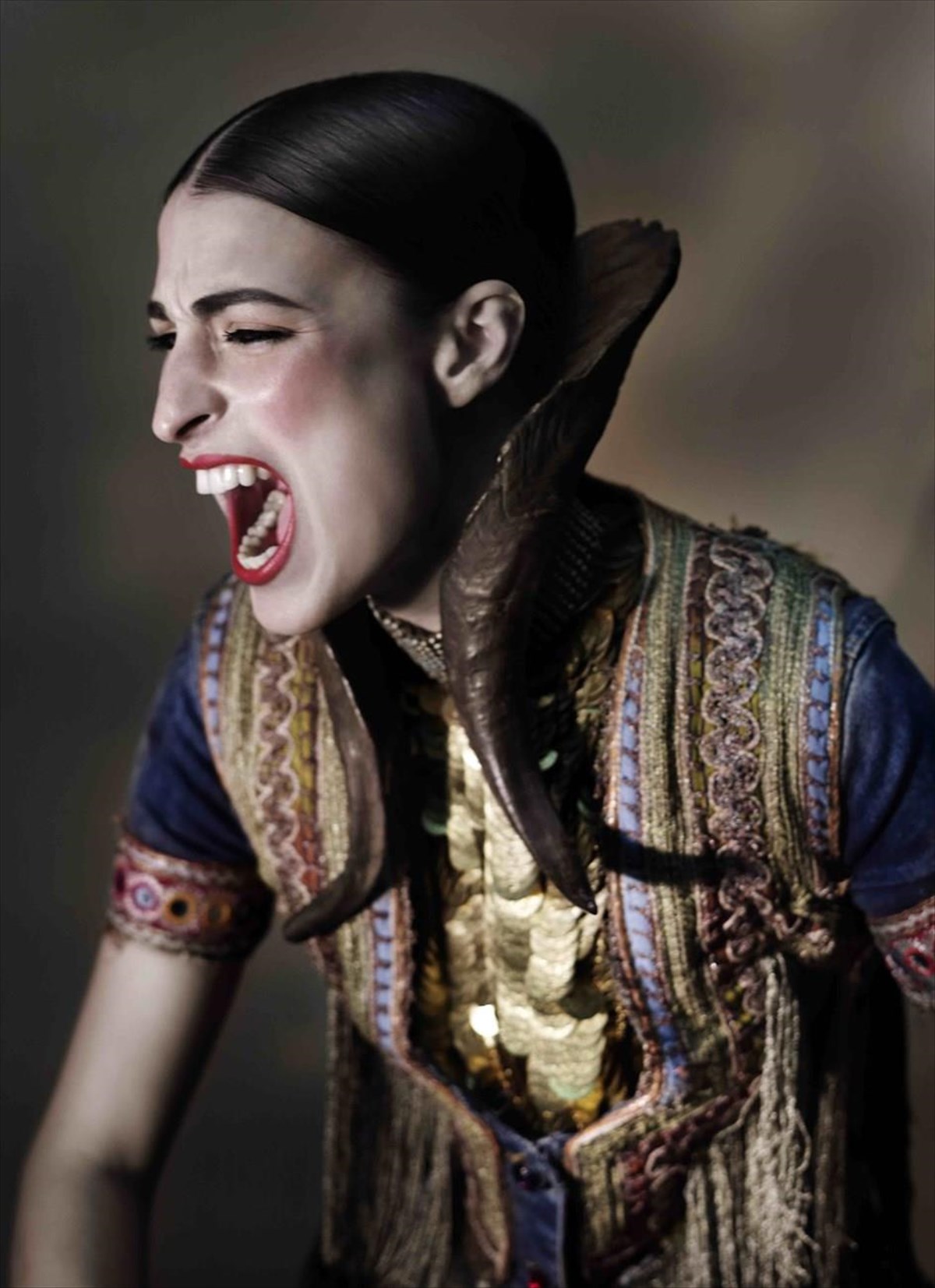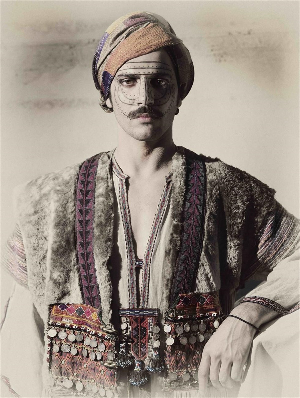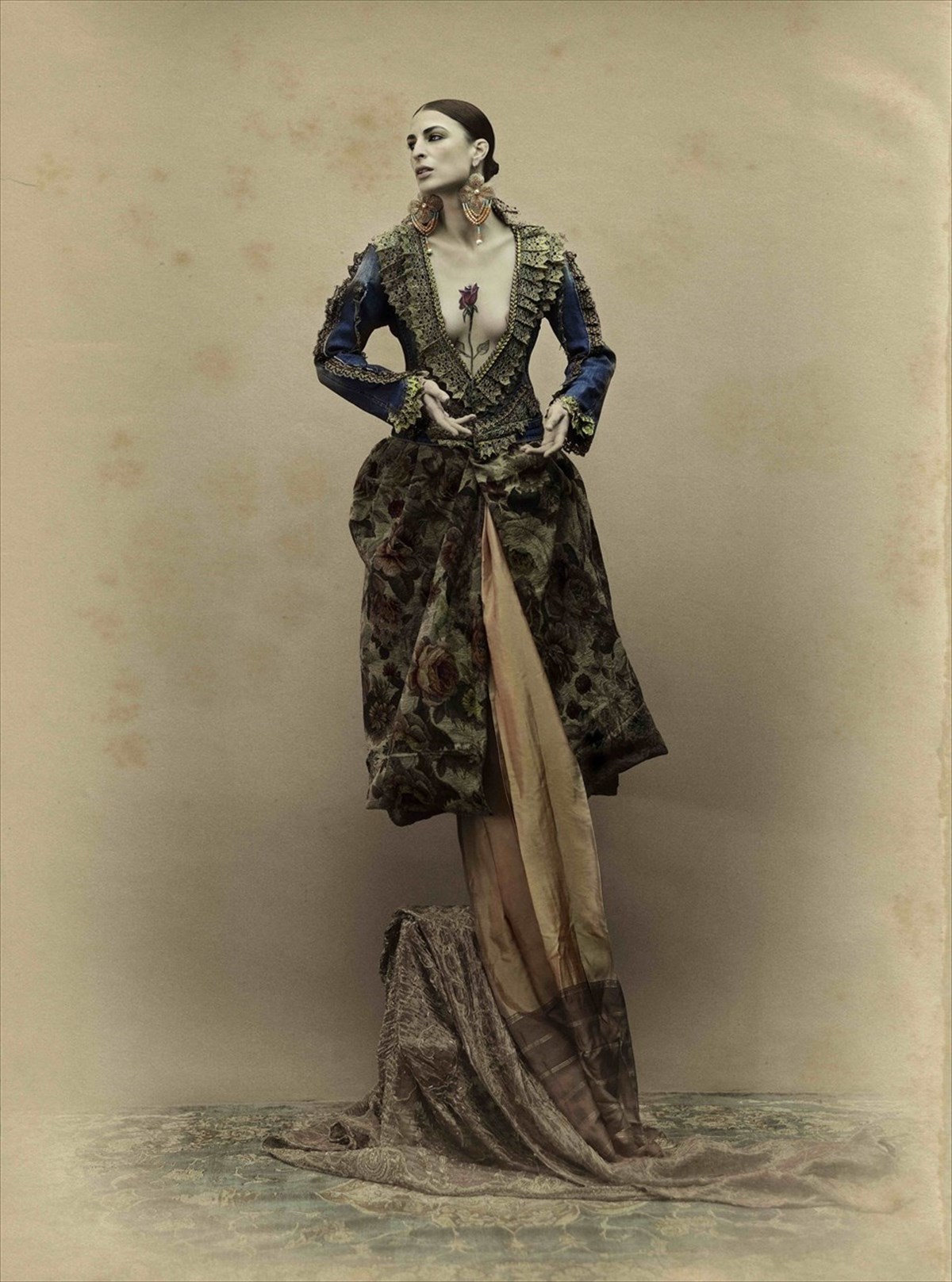 Αναμνήσεις από ταξίδια που γίνονται εικόνες, επαφές με αυθεντικά κοστούμια, το θέατρο, την όπερα, τη μόδα, μετατρέπονται σε στιγμές. Και εκτίθενται για πρώτη φορά στους λευκούς τοίχους ενός χώρου που φιλοξενεί έργα τέχνης. Φλουριά, τουρμπάνια, γούνα, κεντήματα, υπερμεγέθη σκουλαρίκια, ανθισμένα στεφάνια στα μαλλιά και πελώρια μπουκέτα, βραχιόλια-γλυπτά, ένα ξίφος φορεμένο σταυρωτά, τριαντάφυλλα στο δέρμα, στο ύφασμα, στην καρδιά, πέπλο μυστηρίου...