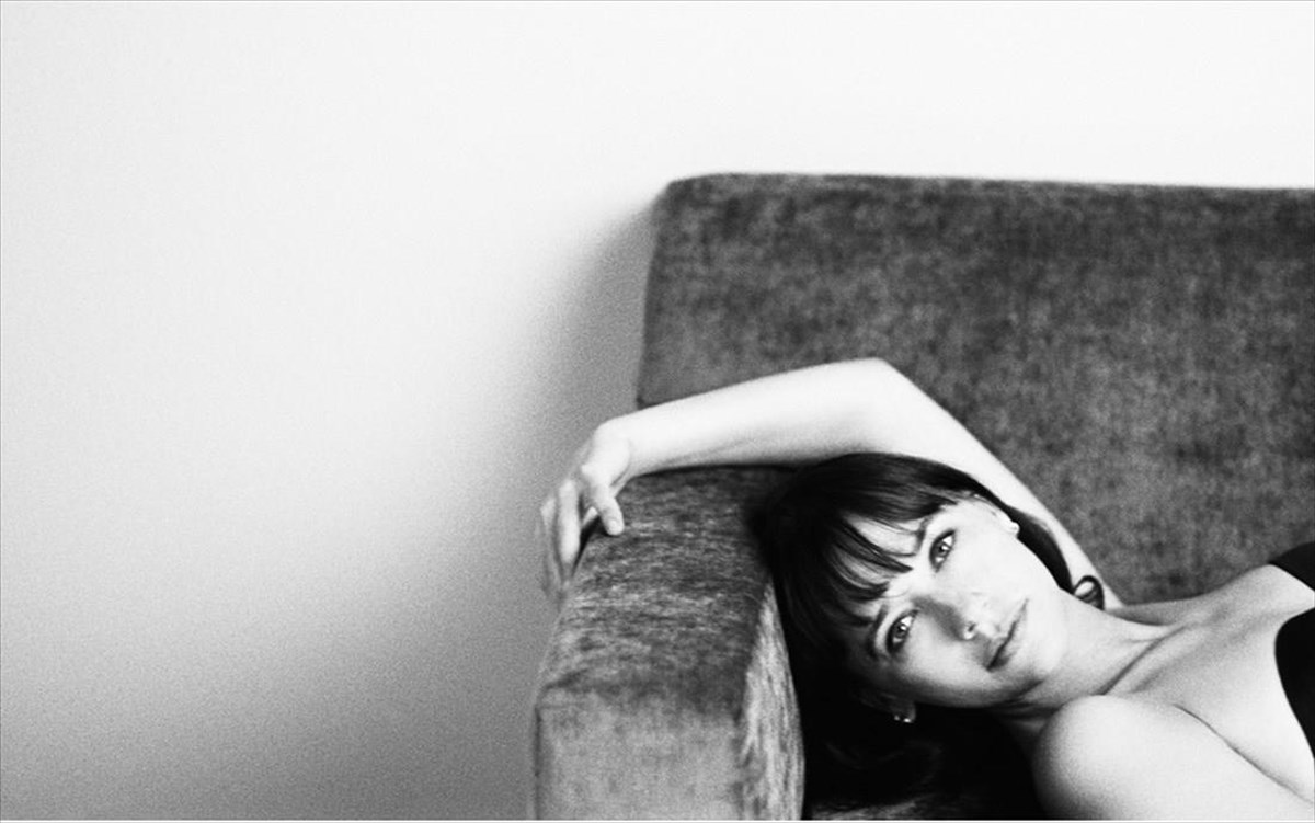 Στην ασπρόμαυρη φωτογραφία μοιάζει σχεδόν άβαφη. Υπέροχο βλέμμα, όμορφα χτενισμένα μαλλιά, σα να σηκώθηκε μόλις από το κρεβάτι, χωρίς κοσμήματα, με ένα πουκάμισο ανοιχτό σαν πιτζάμα και το σουτιέν που διαφημίζει.